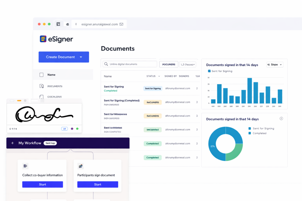 E-Signer is a modern electronic signature platform designed to make document signing simple and efficient. Instead of printing documents, signing them manually, and sending them back through email or courier, E-Signer allows you to complete the entire process digitally in just a few clicks.